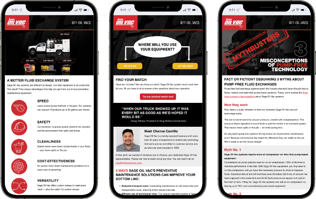 This is exactly how we helped Sage Oil Vac take years’ worth of SEO-optimized blog articles and leverage them to close leads. As their marketing partner, we implemented dynamic workflows customized to a user’s product line of interest and funnel state, delivering content via email that engaged leads and nudged sales.